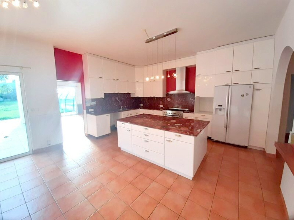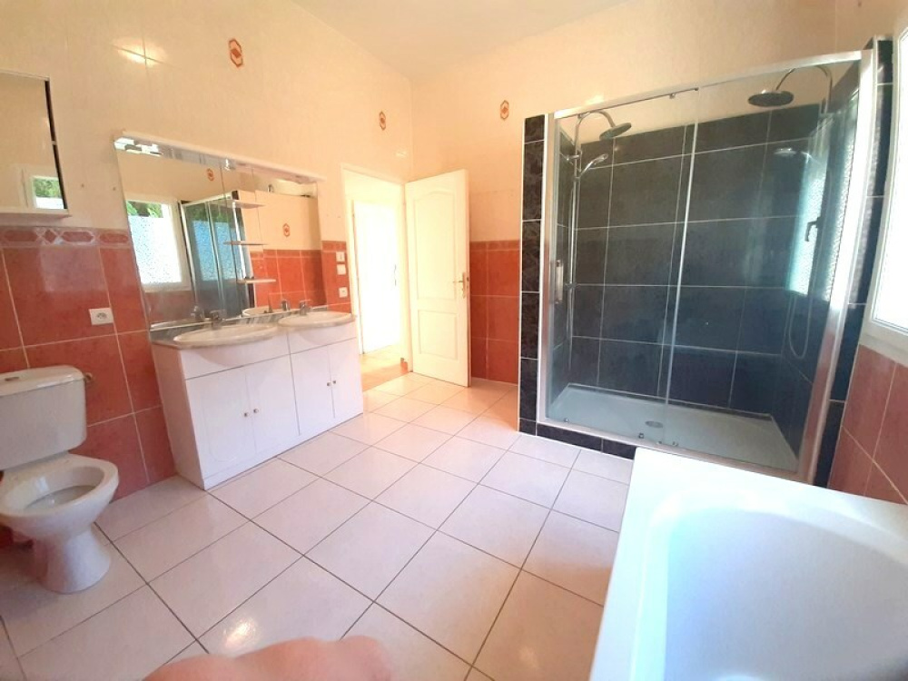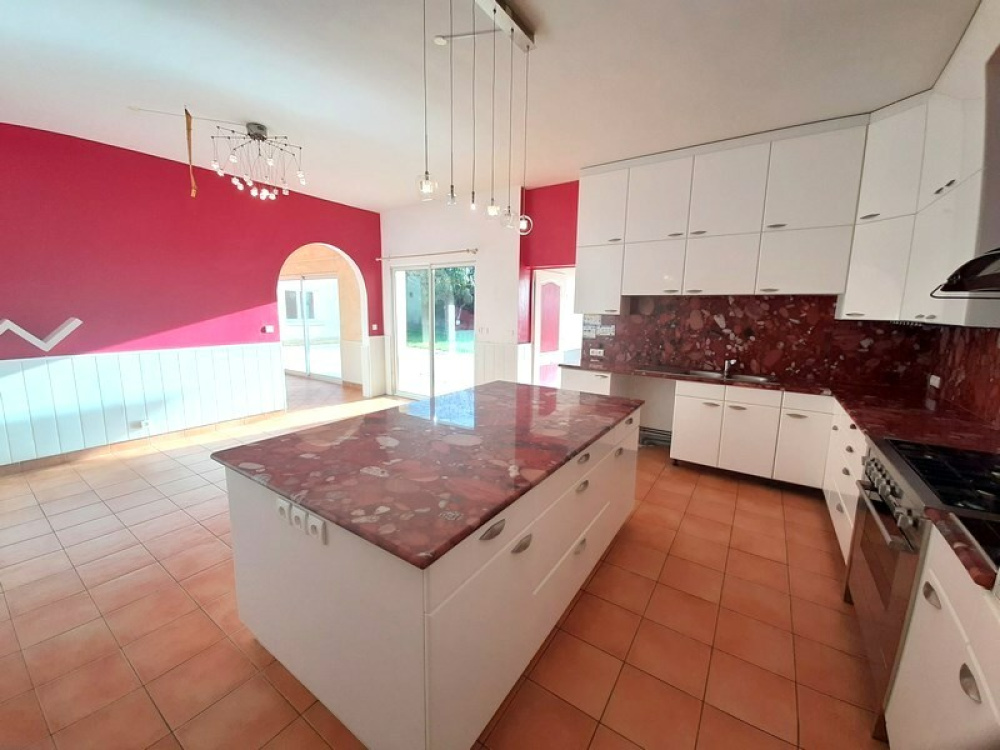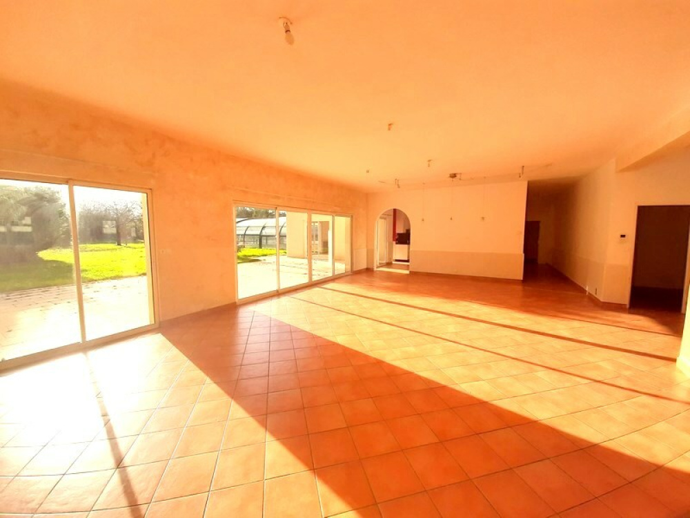 Proche commerces, belle maison familiale de 400m² habitables de plain-pied, offrant vaste séjour lumineux de 120m² donnant sur grande terrasse, belle cuisine ouverte, 7 chambres, 5 salles de bains, jacuzzi, piscine couverte et chauffée, à l'étage grenier carrelé et isolé de 330m². Grand garage attenant de 160m² avec 3 portes automatiques dont une pour camping-car. Terrain de 4000m² entièrement clos. A découvrir rapidement !