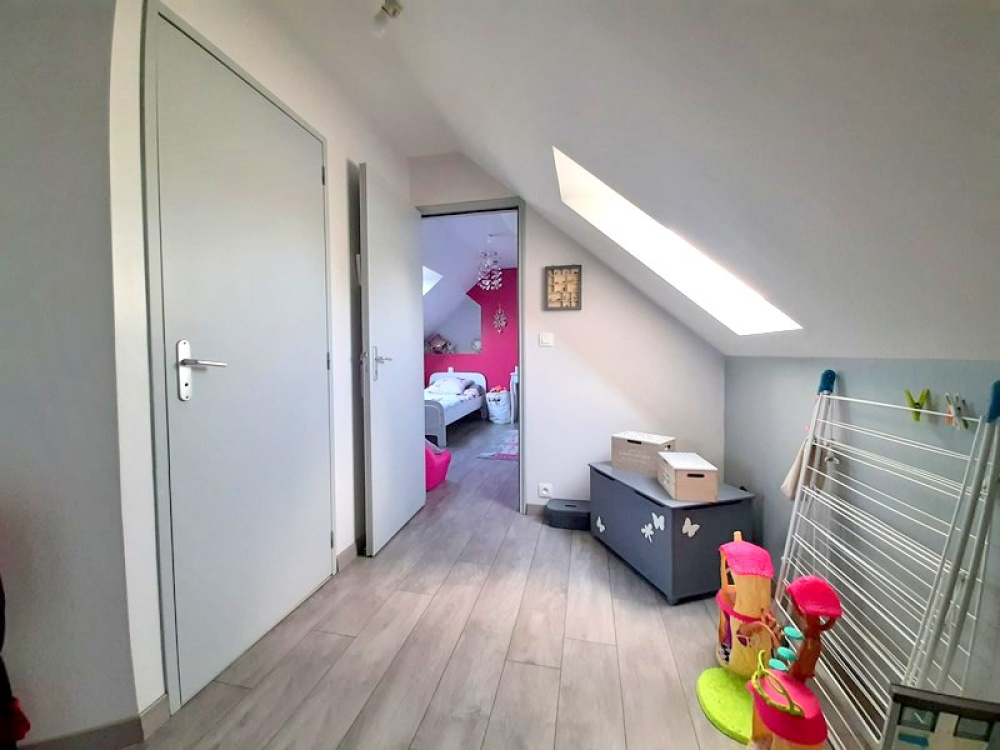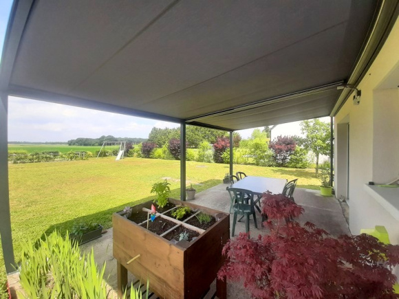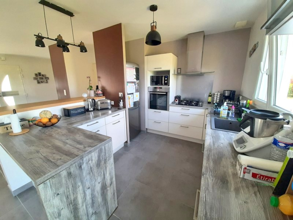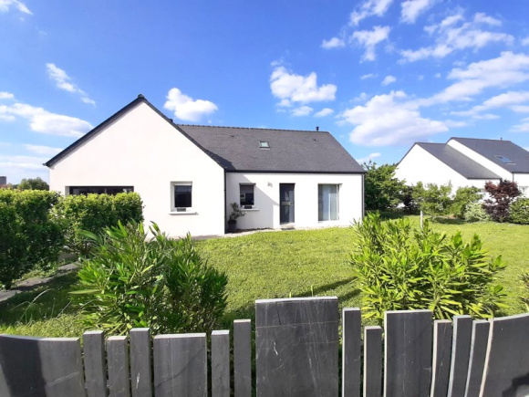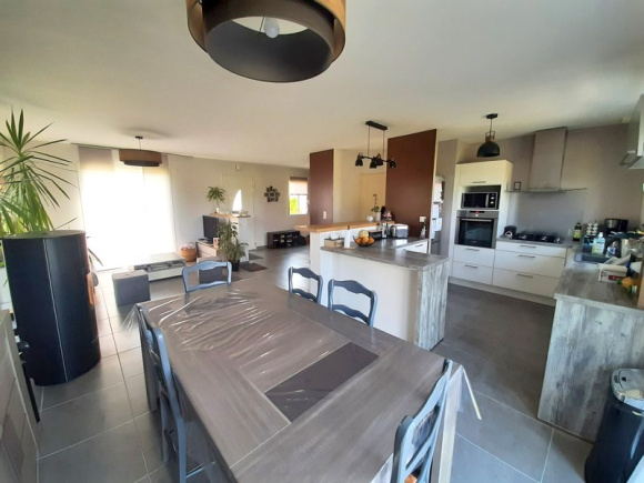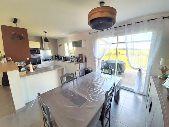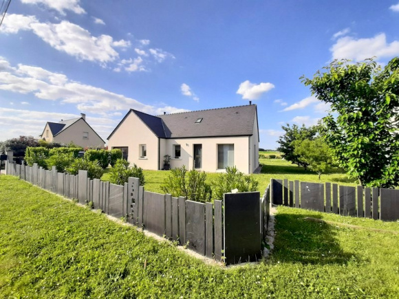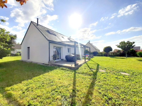 EXCLUSIVITÉ : Au calme, joli pavillon de 2014 à la décoration soignée, offrant belle pièce de vie lumineuse de 48m² avec poêle à granulés, 4 chambres dont deux au rez-de-chaussée, salle de bains, salle d'eau, 2 wc, lingerie, buanderie. Terrasse avec pergola motorisée, cabanon de jardin, sur terrain de 1400 m² avec belle vue dégagée sur la campagne. A visiter !