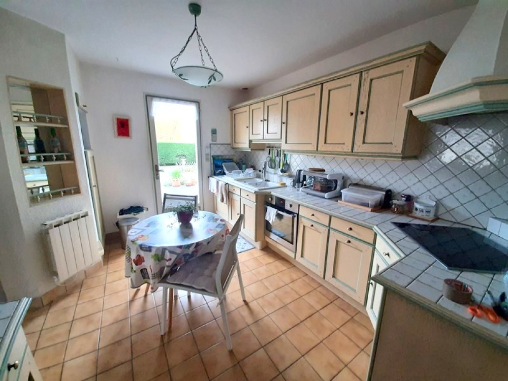 Charmant pavillon de plain-pied, 103m² habitables, offrant pièce de vie de 45m² avec cuisine aménagée et cheminée insert, couloir desservant trois belles chambres avec placards intégrés, salle d'eau, wc. Sous-sol intégral avec grand garage de 56m², buanderie et cave. Belle terrasse, sur terrain clos de 600m². Faire vite !