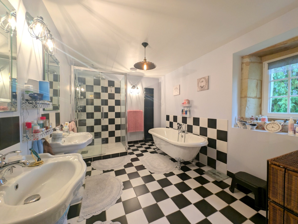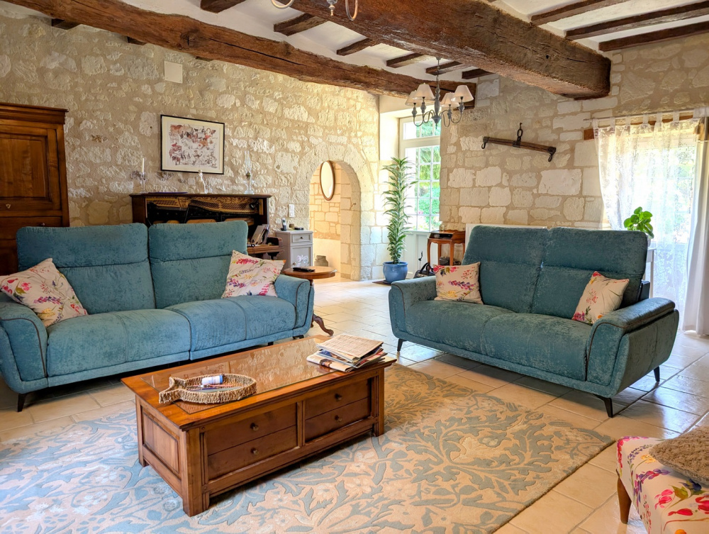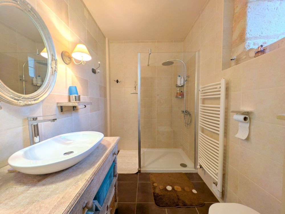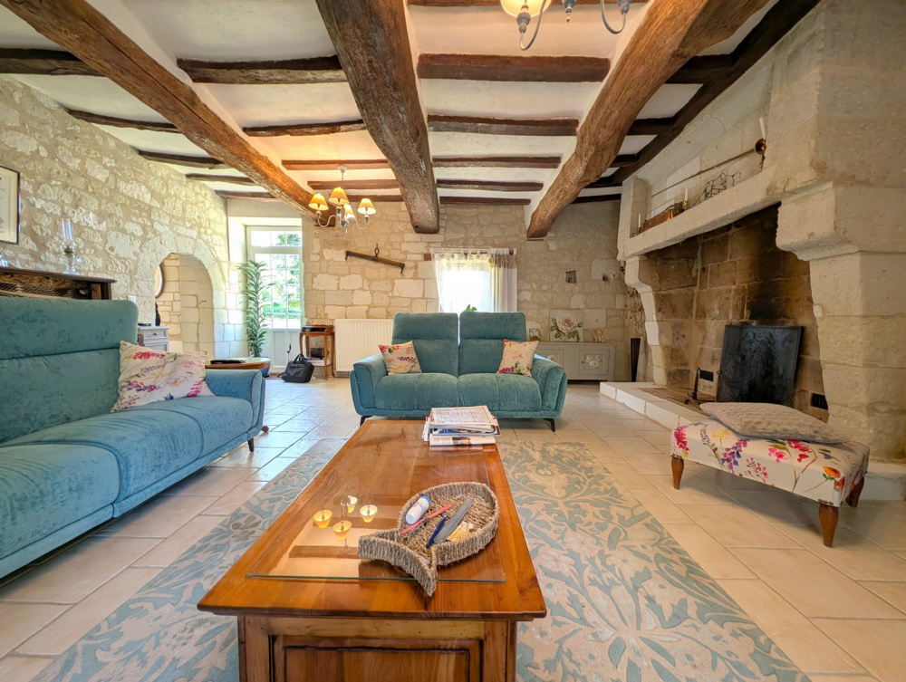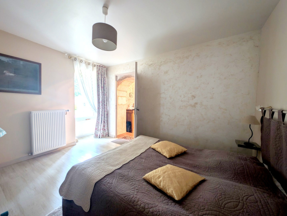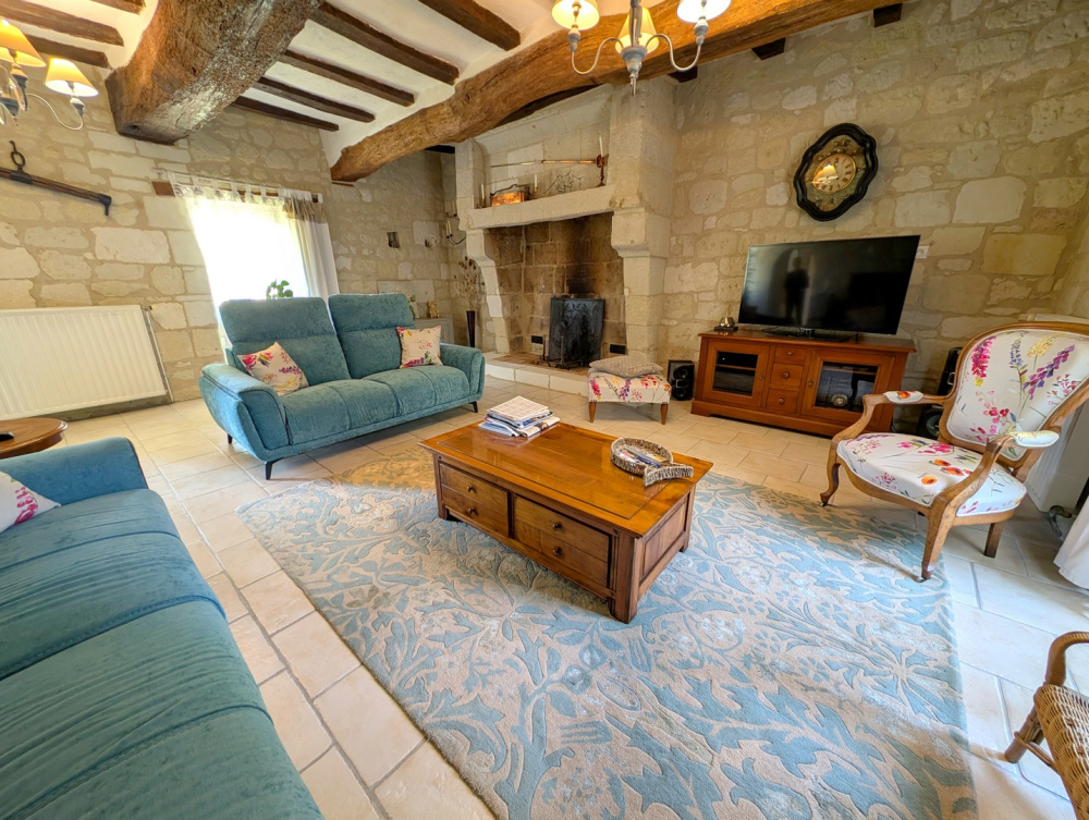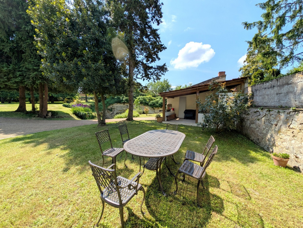 Magnifique longère en pierre entièrement rénovée, 185 m² habitables, offrant entrée avec escalier en pierre, spacieuse cuisine de 36m², beau séjour-salon de 37m² avec cheminée cathédrale et pierres apparentes, buanderie, 5 chambres dont suite parentale au rez-de-chaussée, 2ème salle de bains, 3 wc. Dépendances, préau, puits avec pompe, beau site troglodyte, sur joli terrain paysager de 2570m². L'installation d'une pompe à chaleur permettrait d'obtenir un DPE en C 155. Assainissement aux normes. Belles prestations !