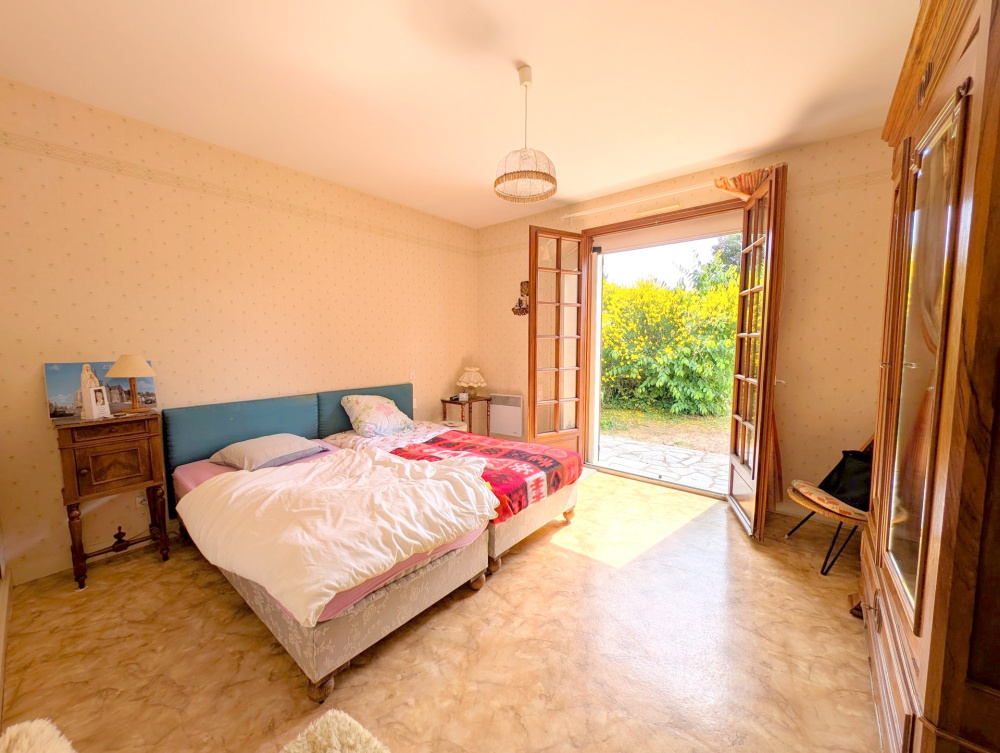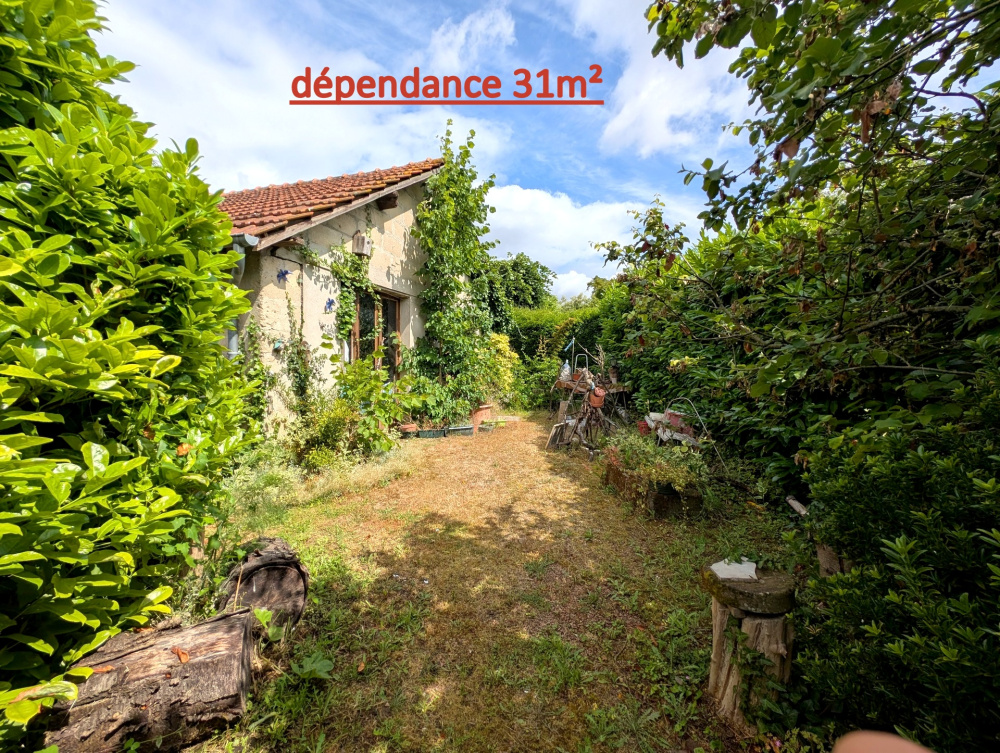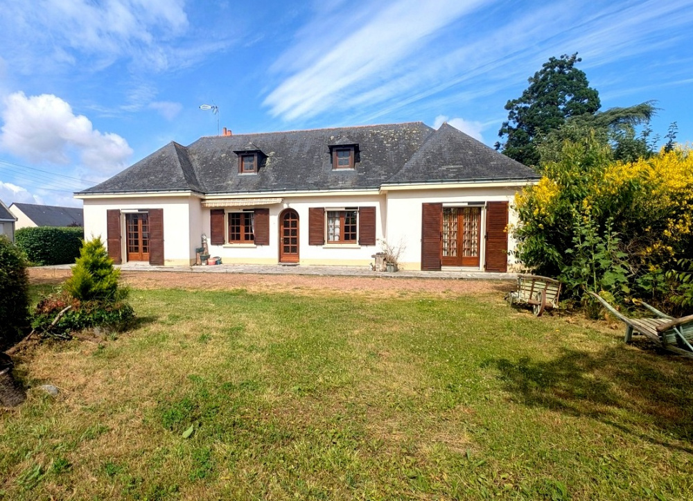 A deux pas des commerces, au calme, belle maison de plain-pied, 112 m² habitables offrant entrée, grande cuisine de 22m², séjour-salon avec cheminée de 31m², couloir desservant 3 belles chambres dont deux avec placard, salle d'eau, wc séparé. Grenier aménageable de 40m². Sous-sol intégral avec garage et cave. Dépendance annexe de 31m², sur charmant terrain clos et paysager de 950m². A visiter !