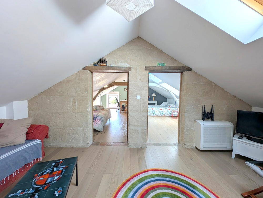 Coup de coeur pour cette belle longère en pierre rénovée et atypique, 177m² habitables, offrant belle entrée en tomettes, cuisine-séjour de 30m², salon de 31m², salle de jeux, 4 chambres, beau dressing, 2 salles d'eau, 3 wc, grande buanderie. Nombreuses dépendances de 200m² dont belle pièce de 60m² et partie garage, cave voûtée, puits, sur terrain clos et paysager de 2500m². Tout-à-l'égout, pompe à chaleur, à visiter ! Les informations sur les risques auxquels ce bien est exposé sont disponibles sur le site Géorisques