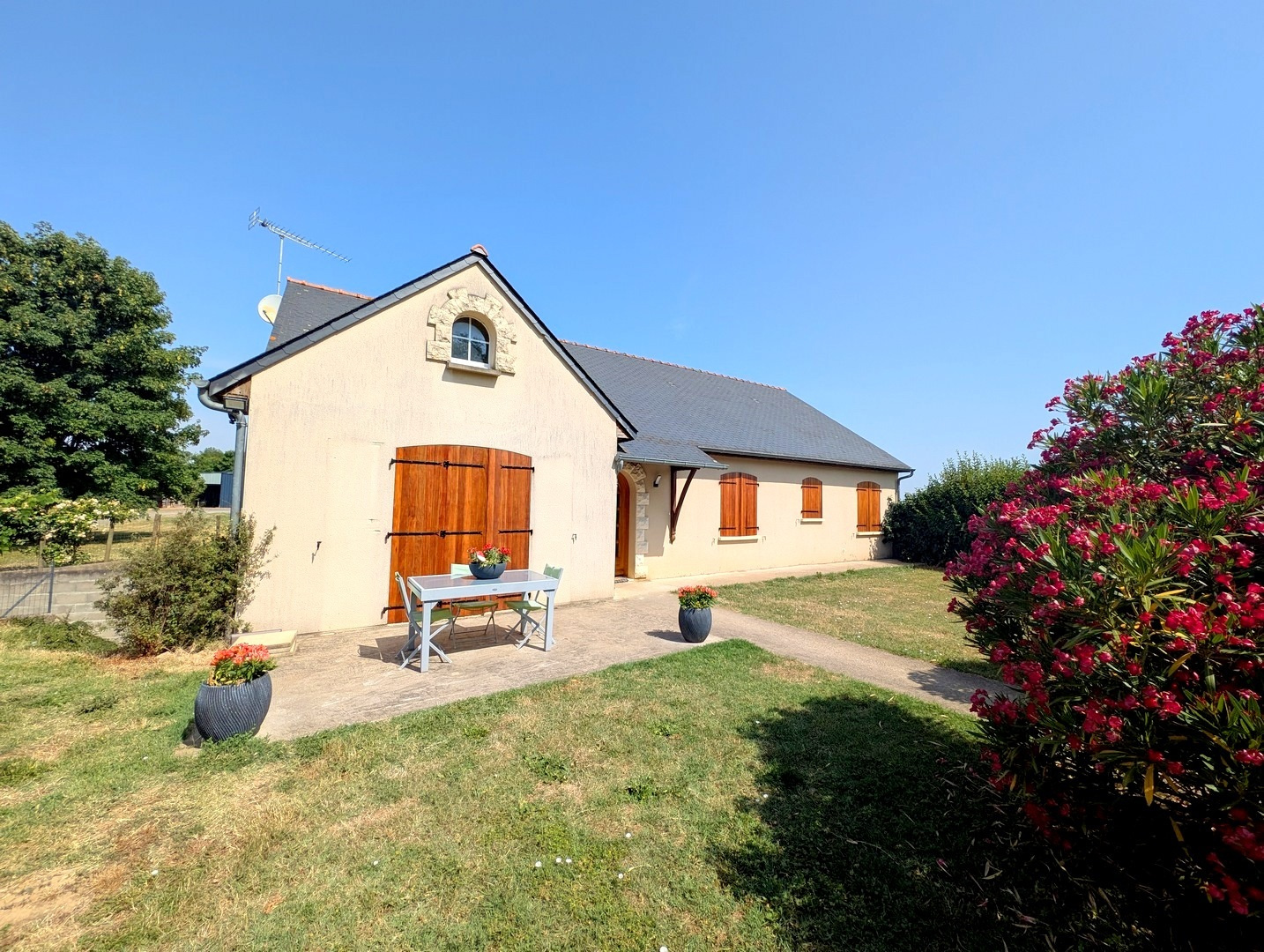 Charmant pavillon de plain-pied offrant belle pièce de vie de 58m² avec cheminée insert et cuisine aménagée, trois chambres avec placard, lingerie, salle de bains (baignoire + douche), wc. Sous-sol intégral avec grand garage de 64m², bureau, salle d'eau chaufferie et cave. Terrain de 7600m² avec hangars de 360m². Les informations sur les risques auxquels ce bien est exposé sont disponibles sur le site Géorisques