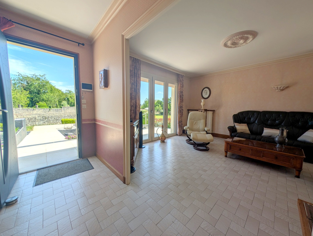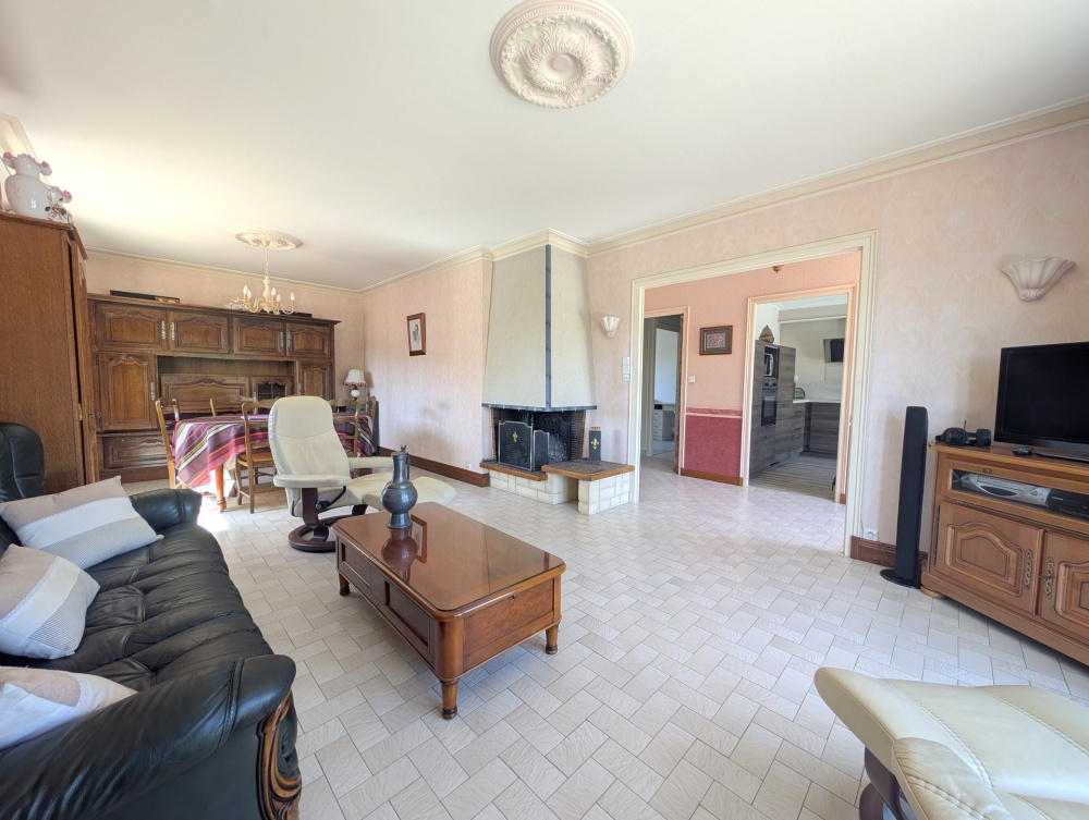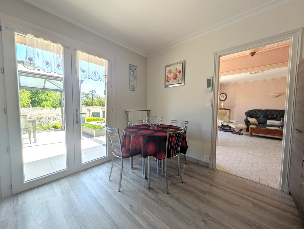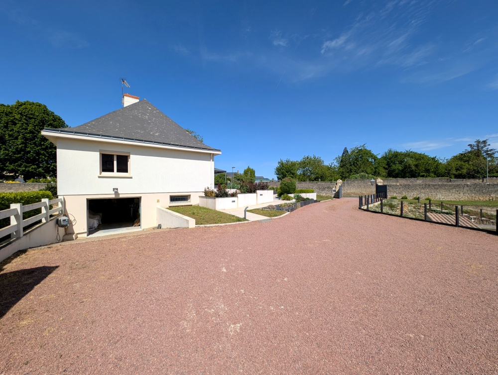 Proche des commerces, belle maison de 103m² habitables, offrant de plain-pied entrée, cuisine aménagée récente, séjour-salon de 30m² avec cheminée insert, couloir desservant deux chambre, un bureau, salle de bains, wc séparé, et belle suite parentale à l'étage, et grenier à la suite de 20m². Sous-sol intégral avec garage, buanderie, atelier, chaufferie. Non attenant, dépendance composée de 4 garages. Belle terrasse avec pergola, sur joli terrain paysager et clos de murs de 2200m² avec puits, petit bassin d'agrément et belle cave troglo. A visiter ! Les informations sur les risques auxquels ce bien est exposé sont disponibles sur le site Géorisques