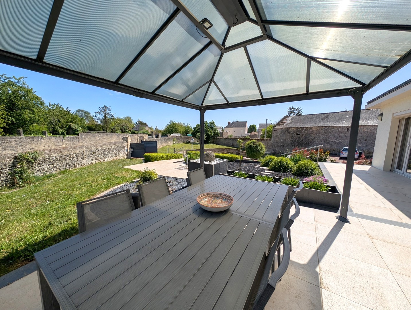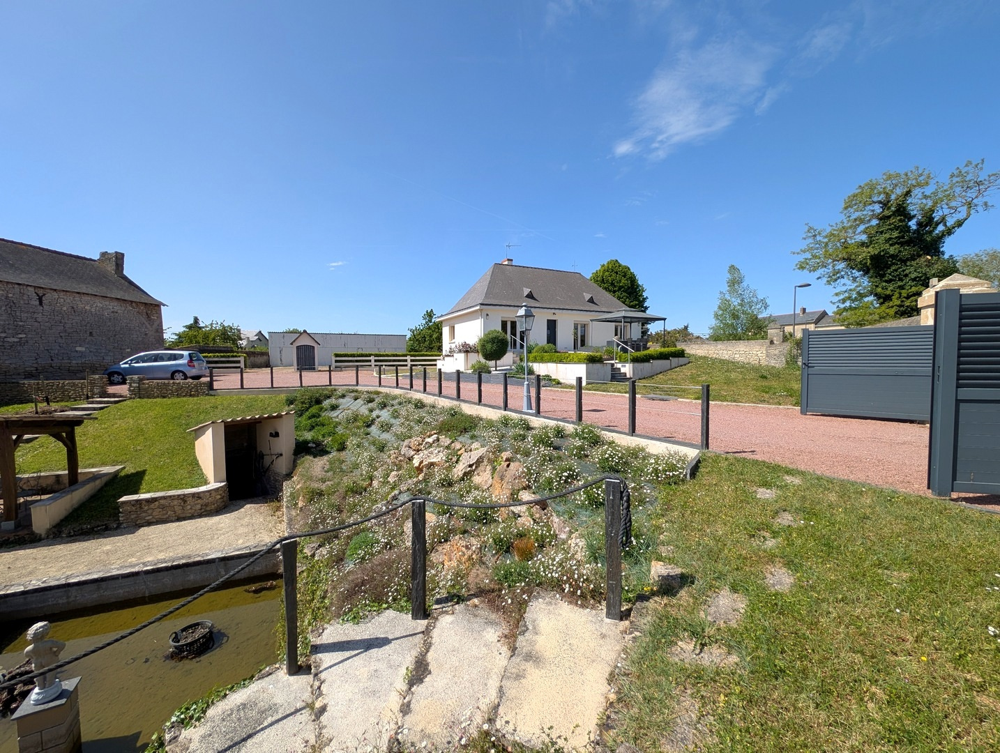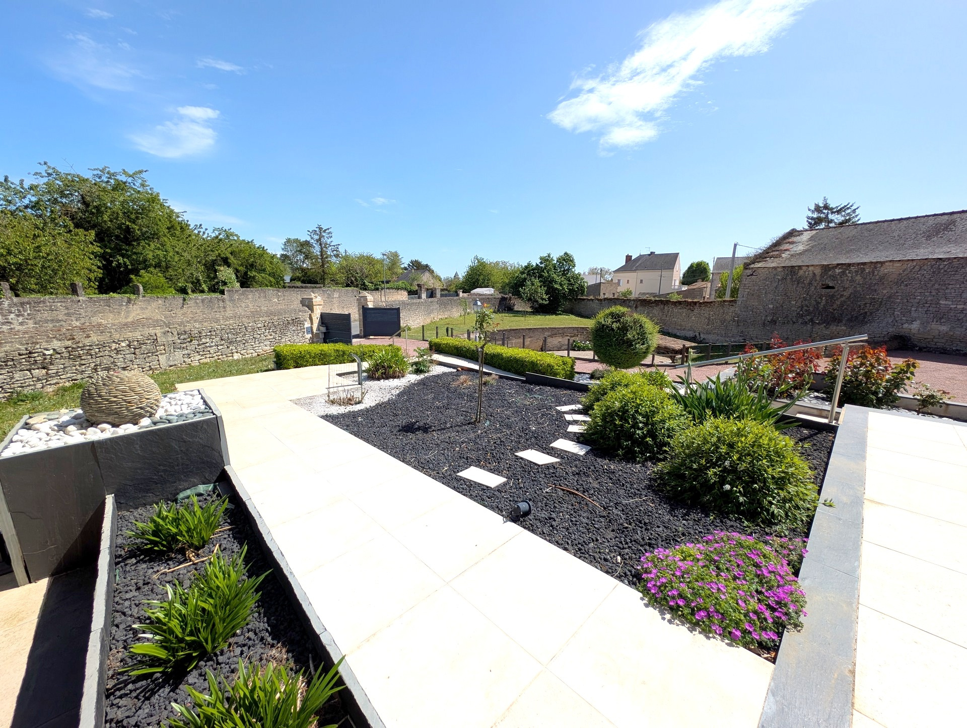Proche des commerces, belle maison de 103m² habitables, offrant de plain-pied entrée, cuisine aménagée récente, séjour-salon de 30m² avec cheminée insert, couloir desservant deux chambre, un bureau, salle de bains, wc séparé, et belle suite parentale à l'étage, et grenier à la suite de 20m². Sous-sol intégral avec garage, buanderie, atelier, chaufferie. Non attenant, dépendance composée de 4 garages. Belle terrasse avec pergola, sur joli terrain paysager et clos de murs de 2200m² avec puits, petit bassin d'agrément et belle cave troglo. A visiter ! Les informations sur les risques auxquels ce bien est exposé sont disponibles sur le site Géorisques