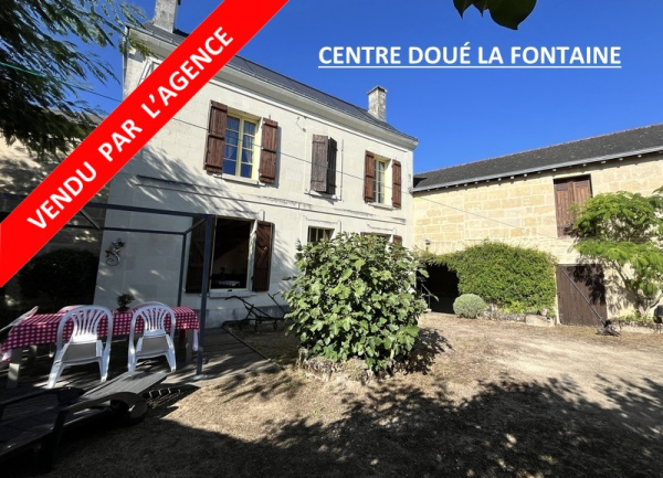 A Doué en Anjou, belle bâtisse à rénover offrant, entrée avec escalier, salle à manger, salon, grande cuisine, chaufferie, WC, une pièce aménageable. A l'étage couloir desservant trois chambres, une pièce à aménager, salle de bain, WC. Beau jardin clos de 1200 m² avec belles dépendances de 37 et 70 m². Maison raccordée au tout-à-l’égout, puits.